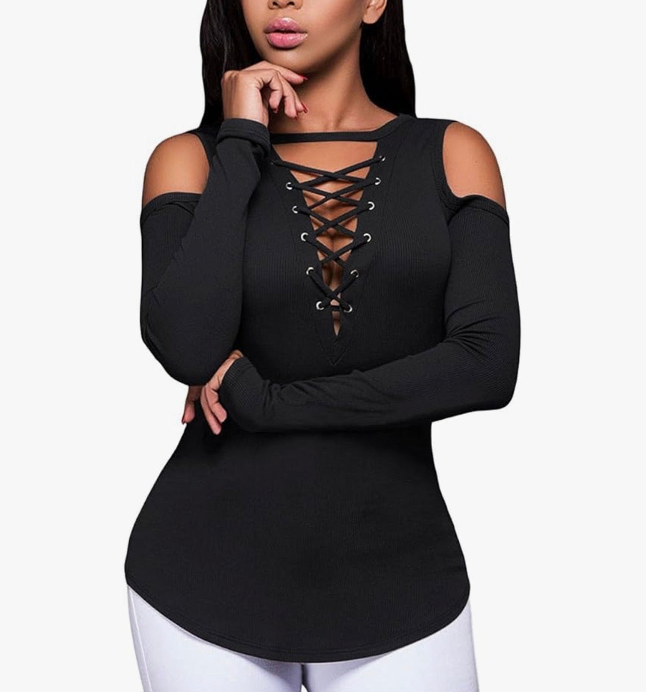 Crisscross Off The Shoulder Long Sleeve (Black)
