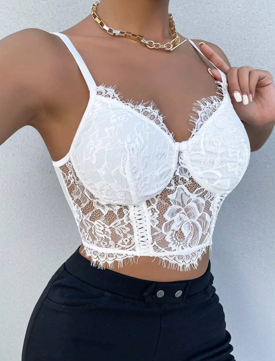 Lace Floral White Cropped Top is a beautiful cropped top with lots of details in it. This cropped top can be dressed up with your favorite jeans and some cute accessories.
